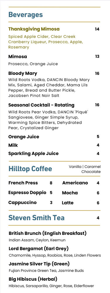 Weekly Rotating Menu Served Every Sunday from 10 – 2