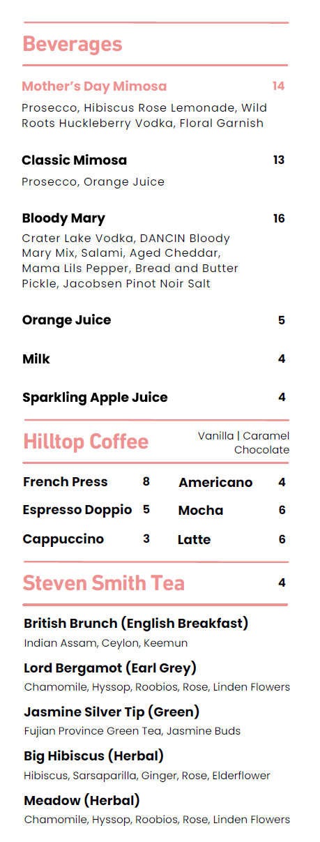 Weekly Rotating Menu Served Every Sunday from 10 – 2